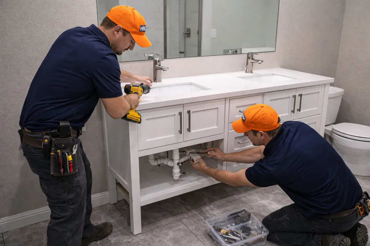 A new vanity changes the entire feel of a bathroom. HKM installs single and double vanities of all sizes, coordinates plumbing rough-in and fixture connections, and ensures every installation is level, properly sealed, and finished cleanly. We also handle toilet replacements, shower fixtures, tub and shower surrounds, and all other bathroom fixture updates as part of a full remodel scope.